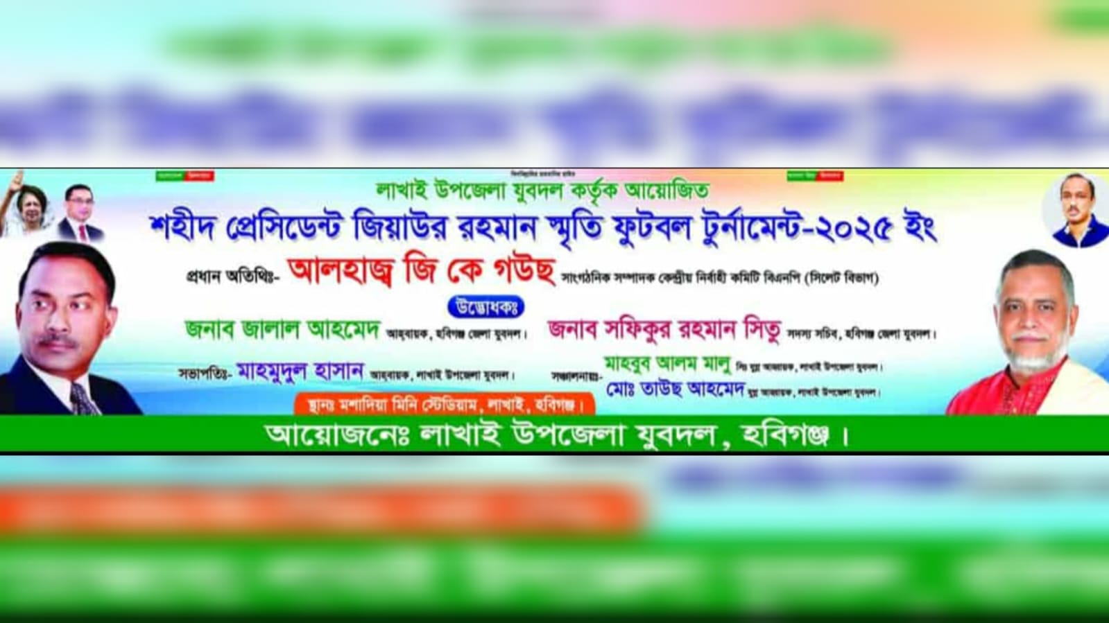 লাখাই উপজেলা যুবদলের আহ্বায়ক মাহমুদুল হাসান, প্রথম যুগ্ম আহ্বায়ক তাউছ আহমেদ ও সদস্য সচিব মাহবুবুল আলম মালু যৌথভাবে দাওয়াত জানিয়েছেন। টুর্নামেন্টের শৃঙ্খলা কমিটির আহ্বায়ক হিসেবে দায়িত্ব পালন করছেন মাহমুদুল হাসান পারভেজ।