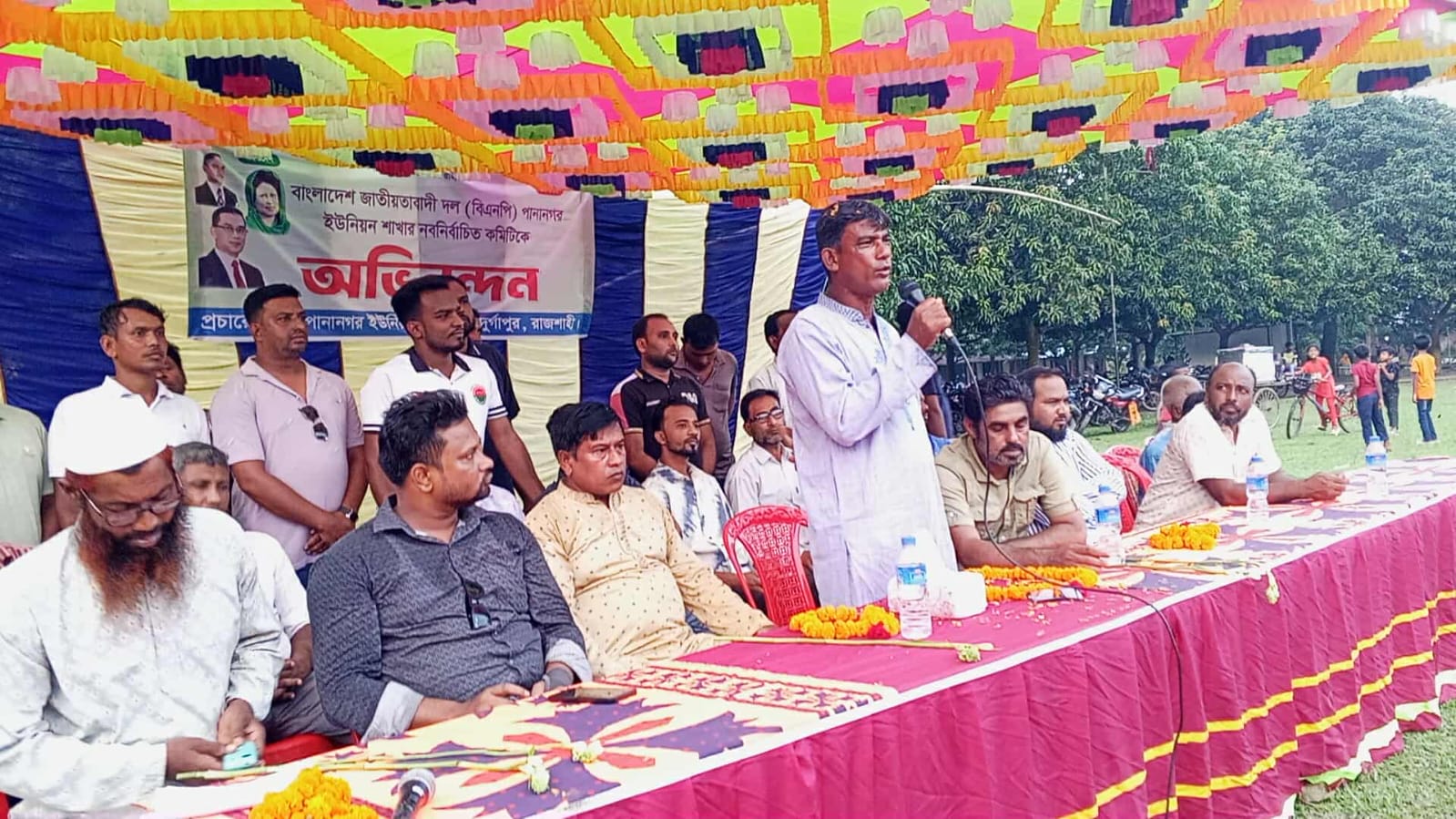 রাজশাহী জেলার দুর্গাপুর উপজেলার নবগঠিত ৩নং পানানগর ইউনিয়ন বিএনপির নেতৃবৃন্দদের সংবর্ধনা অনুষ্ঠান অনুষ্ঠিত হয়েছে। বৃহস্পতিবার বিকাল ৩টায় তেবিলা উচ্চ বিদ্যালয় মাঠে আয়োজিত এ সংবর্ধনা অনুষ্ঠানে স্থানীয় নেতাকর্মীরা অংশ নেন।