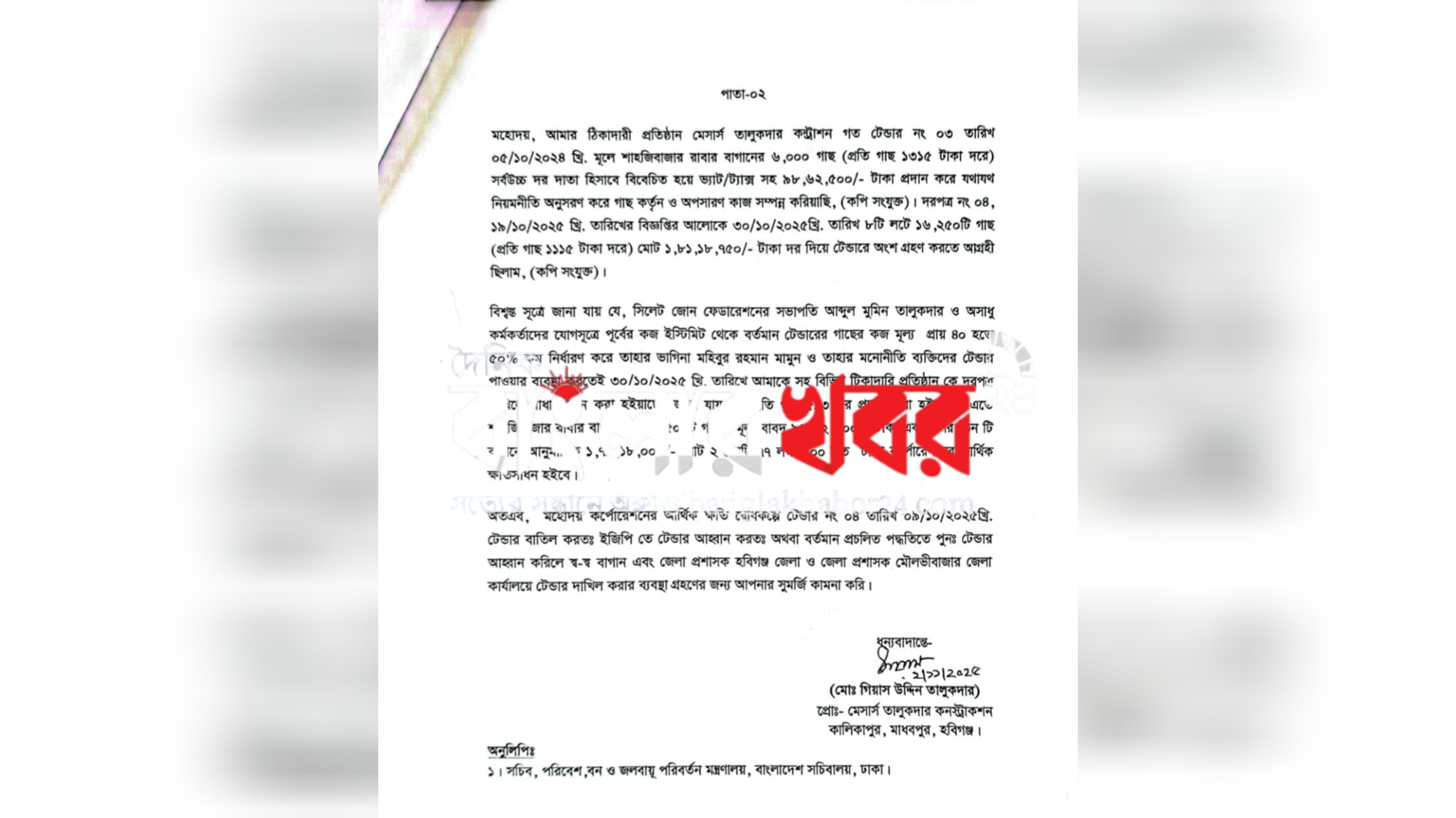 অভিযোগকারী গিয়াস উদ্দিন তালুকদার আরও বলেন,