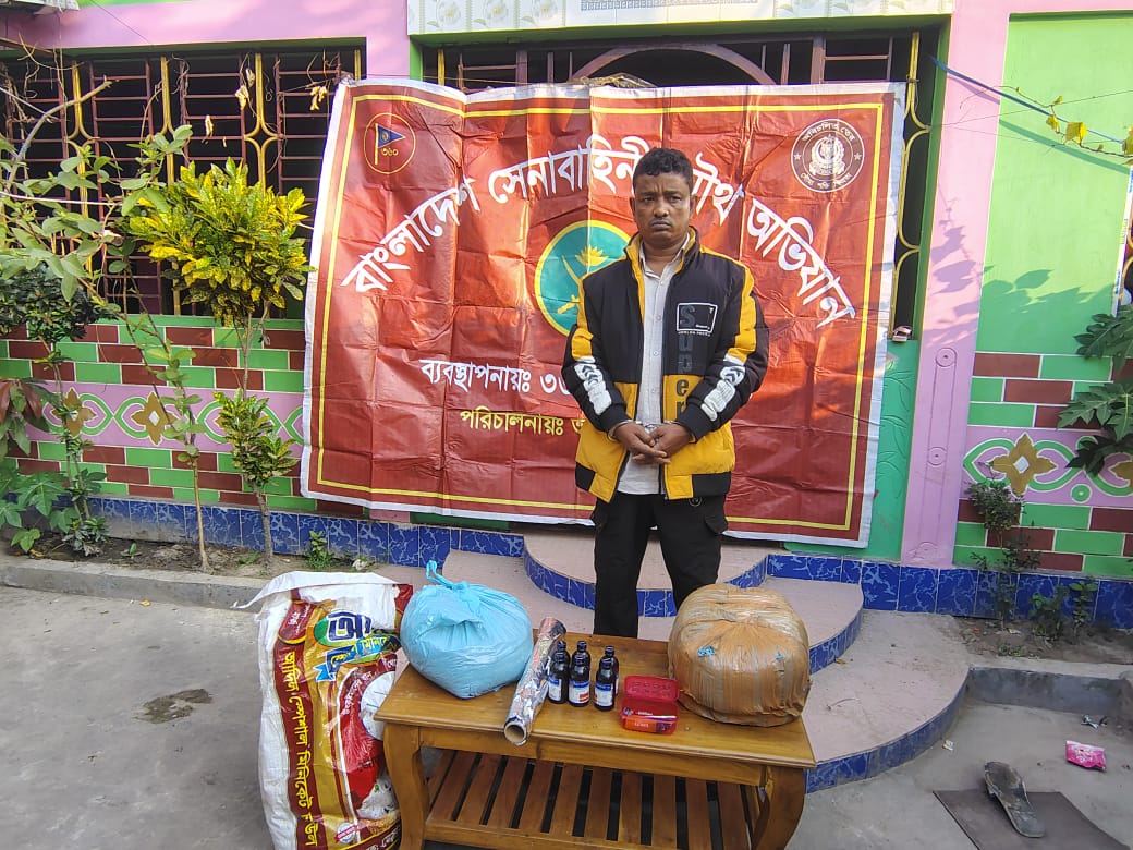 মাধবপুরে সেনা অভিযানে গাঁজা ও ফেনসিডিলসহ একজন আটক