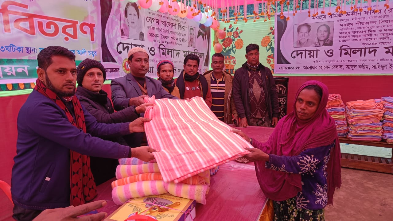 মাধবপুরে দক্ষিণ মাধবপুর উন্নয়ন পরিষদের ২৫তম প্রতিষ্ঠাবার্ষিকীতে শীতবস্ত্র বিতরণ