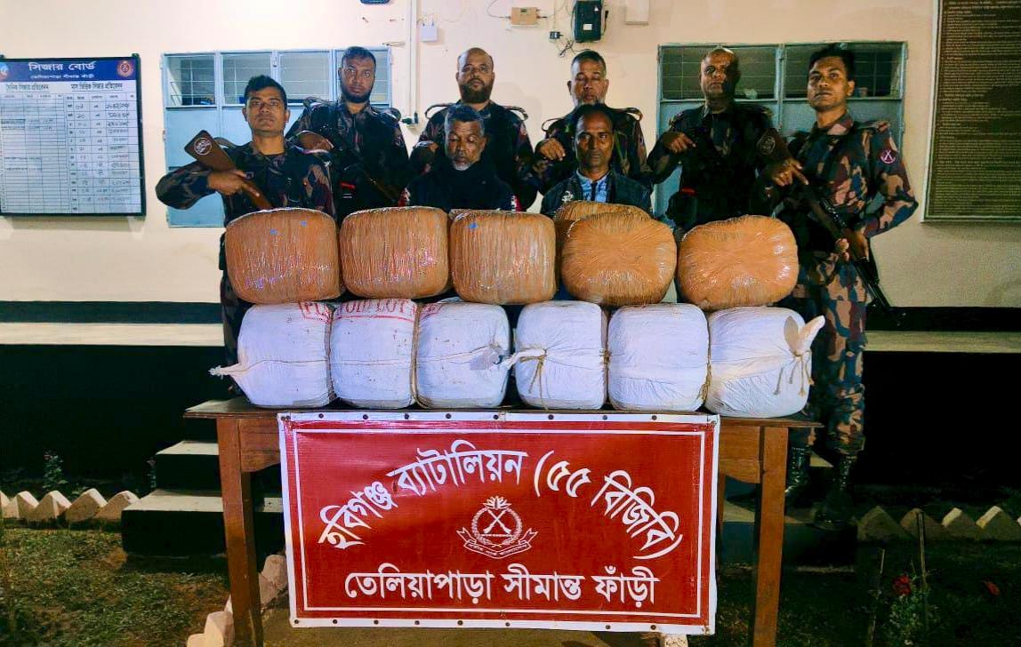 মাধবপুরে ট্রাকভর্তি খড়ের ভেতর থেকে ১০০ কেজি ভারতীয় গাঁজা উদ্ধার, আটক ২