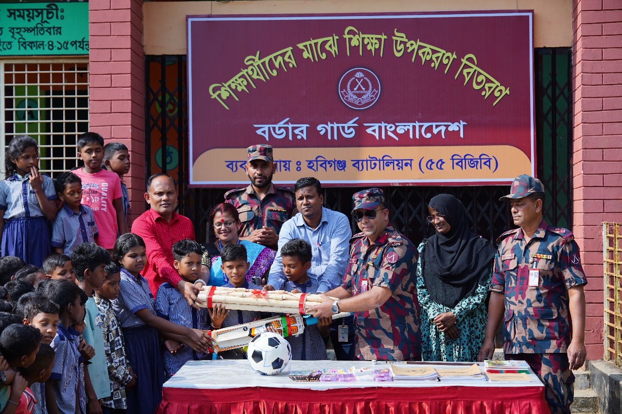 হবিগঞ্জে সীমান্তবর্তী জনসাধারণের মাঝে ৫৫ বিজিবির বিনামূল্যে চিকিৎসা ও শিক্ষা উপকরণ বিতরণ